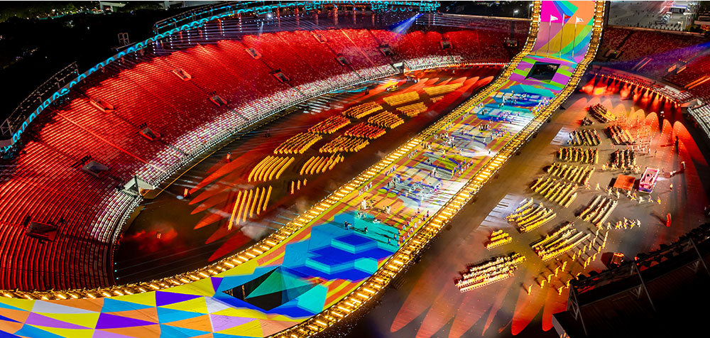 2025年11月9日晚,廣東奧林匹克體育中心華光流轉(zhuǎn)、燈火璀璨,中華人民共和國第十五屆全國運動會開幕式在萬眾矚目中盛大啟幕。作為首次由廣東、香港、澳門聯(lián)合承辦的體育盛會,這場以“圓夢未來”為主題的開幕式,秉持“國際水準、中國氣派、嶺南風韻、灣區(qū)魅力”為核心理念,通過科技與文化的深度融合,視覺敘事與空間美學(xué)的深度構(gòu)建,呈現(xiàn)了一場跨越時空的視聽盛宴。不僅展示了粵港澳傳統(tǒng)與現(xiàn)代交融、體育與藝術(shù)共生的繁榮圖景,更是一曲三地同心的盛大交響。