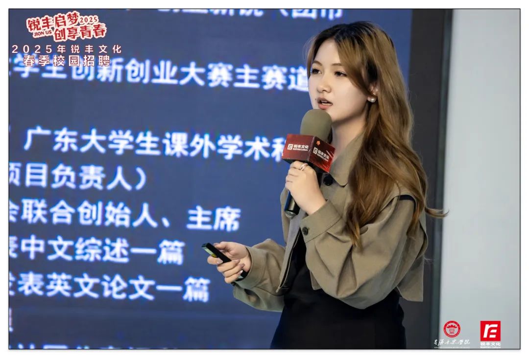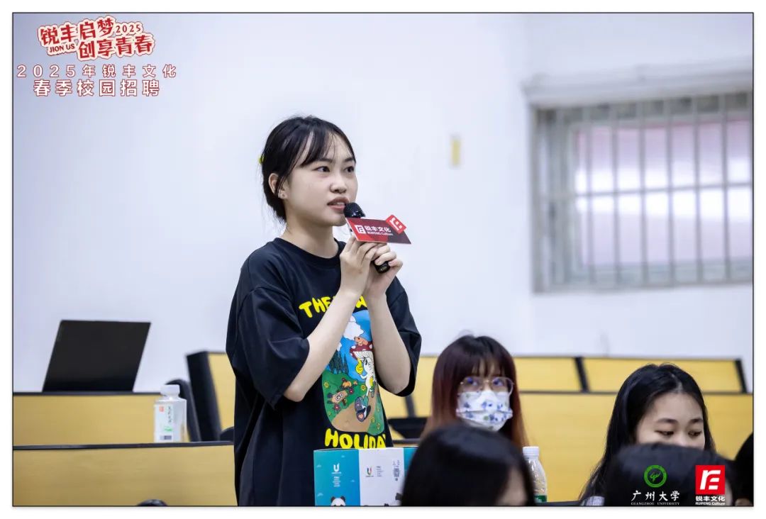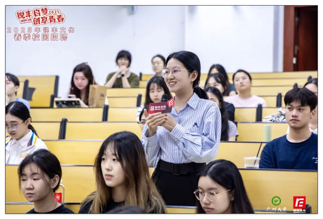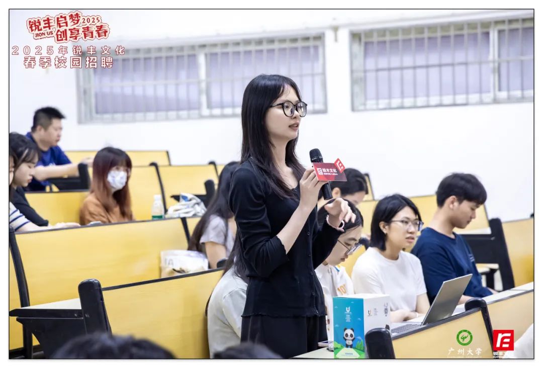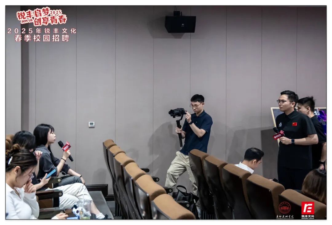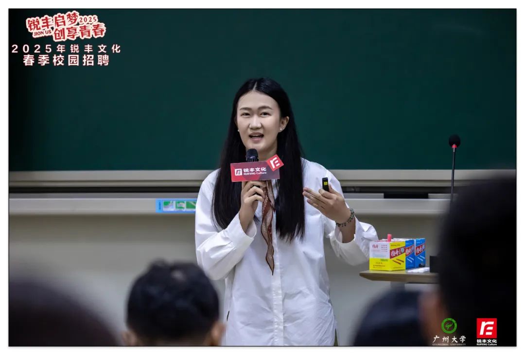 4月,銳豐文化以"青春銳不可當(dāng),豐采無限未來"為主題,聯(lián)動星海音樂學(xué)院、廣州大學(xué)、廣州美術(shù)學(xué)院三所高校,通過多元化的春季校園招聘宣講會,深化校企人才共育模式。聚焦商務(wù)、策劃、品牌等八大核心崗位,創(chuàng)新采用案例分享、沉浸互動等形式,吸引近千名學(xué)子參與,為青年人才搭建職業(yè)成長快車道。