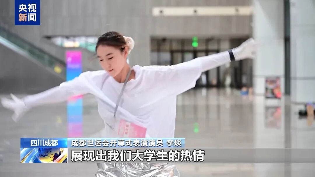 成都世運(yùn)會(huì)開幕式表演演員表示,《繽紛之約》的音樂一聽起來就會(huì)讓人有積極向上的感覺,展現(xiàn)出自己的特長(zhǎng),展現(xiàn)出我們大學(xué)生的熱情。
