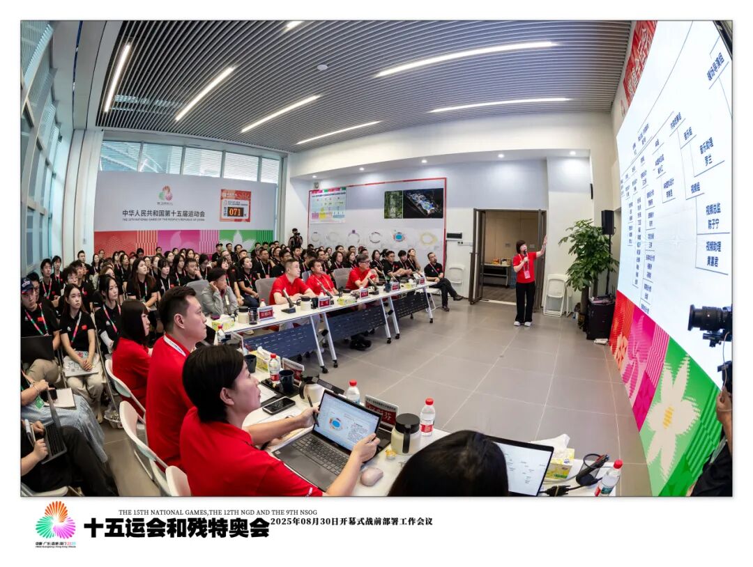 8月30日,在十五運(yùn)會(huì)開幕式倒計(jì)時(shí)71天之際,十五運(yùn)會(huì)開幕式主創(chuàng)團(tuán)隊(duì)召開了戰(zhàn)前部署工作會(huì)議。開幕式總制作人、銳豐科技董事長王銳祥,總監(jiān)制劉偉強(qiáng),副總導(dǎo)演、銳豐文化總經(jīng)理黃沛凌,執(zhí)行總導(dǎo)演孟可等百余名骨干參會(huì)。九月份,開幕式籌備工作全面進(jìn)入場內(nèi)排練階段。
